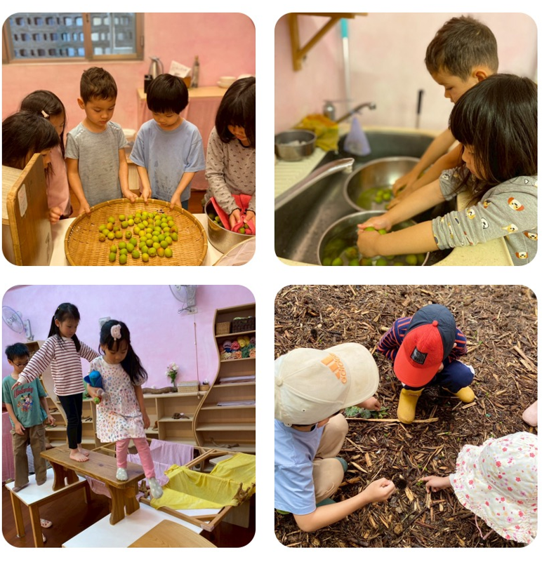 學校附近鄰居家的梅樹,在一片綠意間掛滿了圓潤飽滿的青梅。清明節氣過後,正是梅子盛產的時節,剛好,農夫叔叔也送來了一大袋剛採下的梅子,孩子們捲起袖子,專注地開始挑去蒂頭、洗淨果實,並溫柔地將洗好澡的梅子擦乾。孩子們的手觸碰著大地的果實,將心意封存進罐子裡。現在,我們只需靜靜等待,讓時間施展魔法,期待過一陣子,能一起嚐嚐這酸甜軟Q的春天滋味。