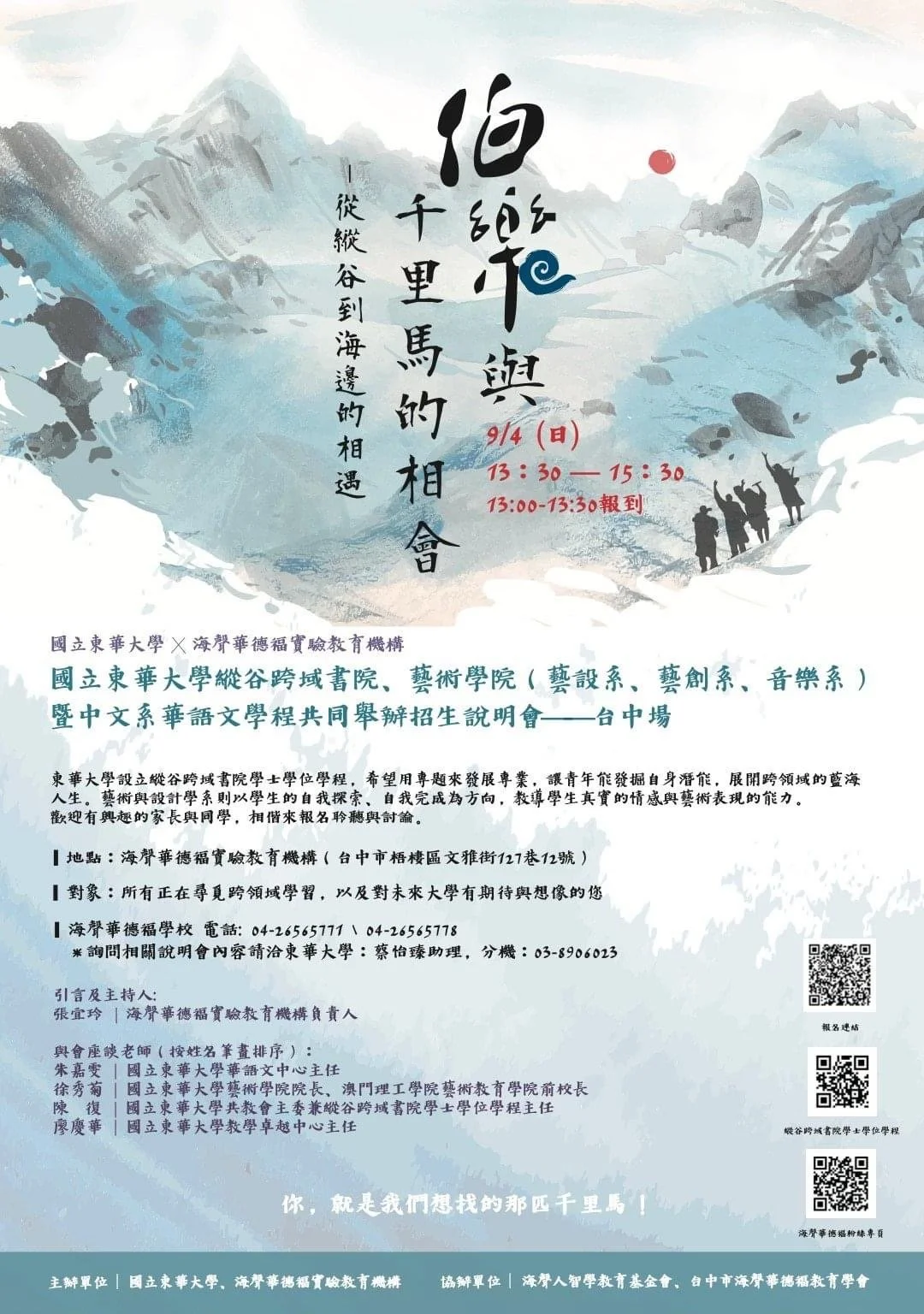 .國立東華大學縱谷跨域書院、藝術學院(藝設系、藝創系、音樂系)暨中文系華語文學程共同舉辦招生說明會